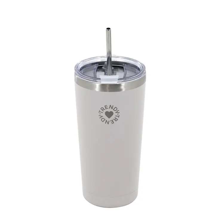 Composicion: Vaso doble capa con capa interna 100% de acero inoxidable AISI 304 y capa externa 100% acero inoxidable AISI 201. Tapa 100% de acrilonitrilobutadieno estireno, burlete 100% de silicona. Con sorbete 100% de acero inoxidable AISI 304.