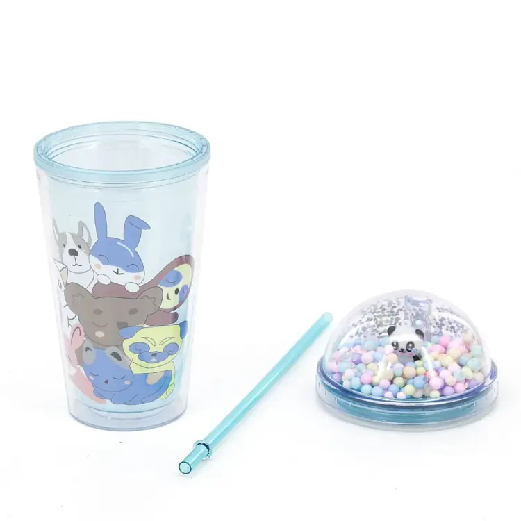 Composicion: Vaso doble capa 100% de acrilonitrilo-estireno. Tapa 100% de acrilonitrilo-estireno, sorbete 100% de polipropileno, burlete 100% de silicona.