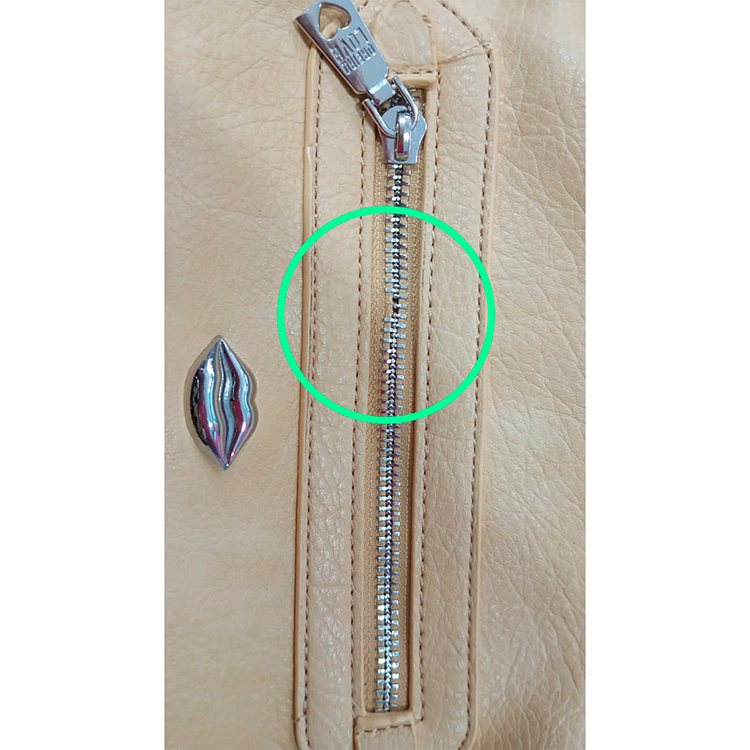 Cierre del bolsillo frontal sin un par de dientes (cierra de manera correcta)