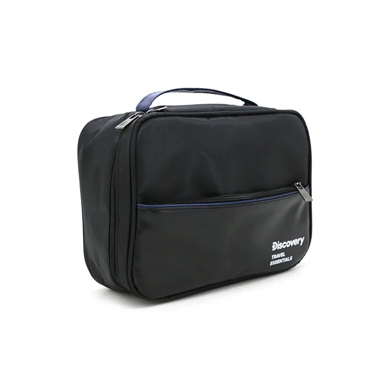 Organizador de viaje Discovery. Material: 70% Poliester + 30% Cuero PU. Dimensiones: largo 18 cm x ancho 24 cm. x profundidad 9cm.